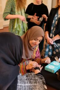 The event also included henna and smelling some scents from Oman such as frankincense, oud and Amouage perfumes. The group concluded their visit with networking and a lunch reception also attended by a diplomat from the Embassy of the Sultanate of Oman.