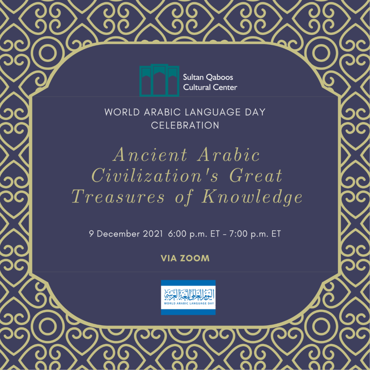 ZoomJoin SQCC to Celebrate World Arabic Language Day 2021 with special guest lecturers: Dr. Marina Tolmacheva who will speak on Ahmad ibn Majid: the Omani navigator and poet , Dr. Charles E. Butterworth who will speak on Alfarabi on language, logic, and clear thinking, and Dr. Waseem El-Rayes who will speak on Ibn Khaldun’s Use…