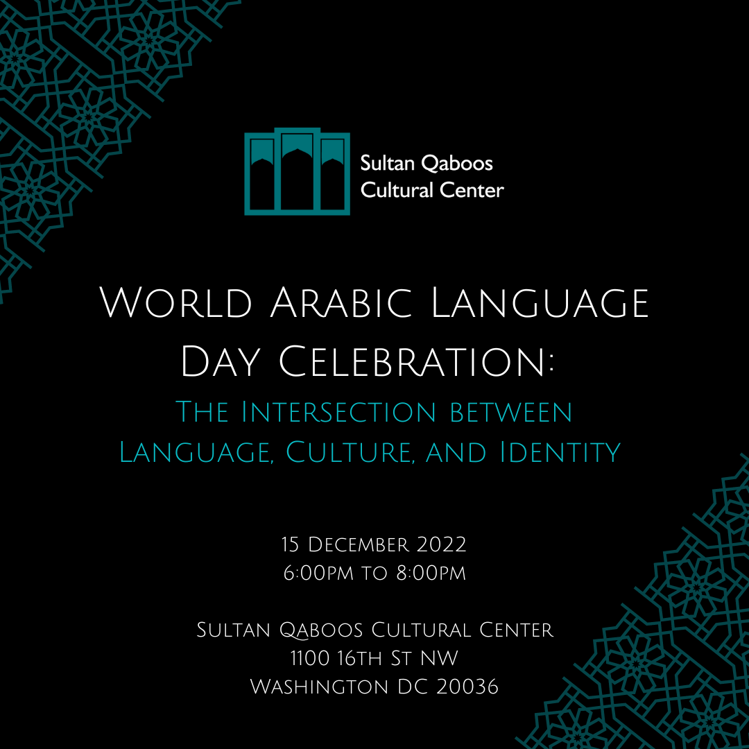 Sultan Qaboos Cultural Center 1100 16th St. NW., Washington, DCJoin SQCC in celebrating World Arabic Language Day. This year will focus on in the Intersection between Language, Culture, and Identity. Reception to follow. RSVP HERE: Capacity Reached