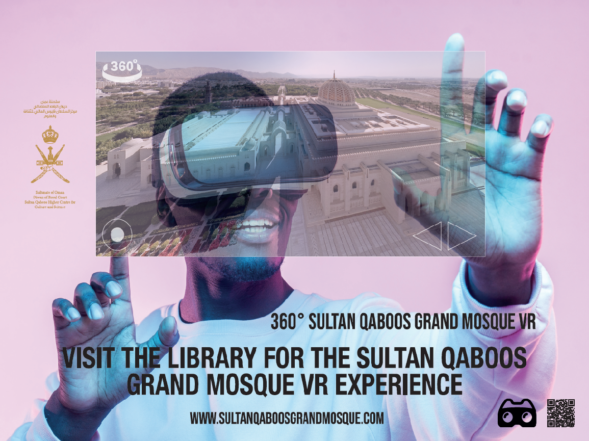 Take a free self-guided tour of the National Museum in Oman by visiting the SQCC Library. Immerse yourself into a 360° virtual environment and explore every inch of the National Museum.